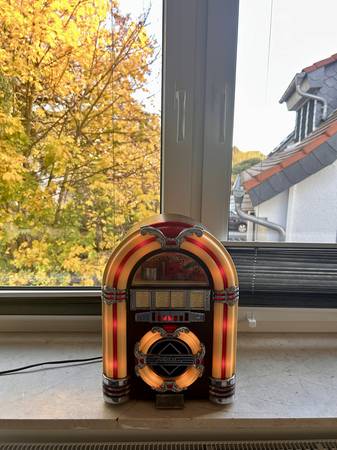 Zustand: Voll funktionsfähig, gepflegt, keine Defekte. Ideal für Rockabilly-Fans, Diner-Deko oder Vinyl-Liebhaber.